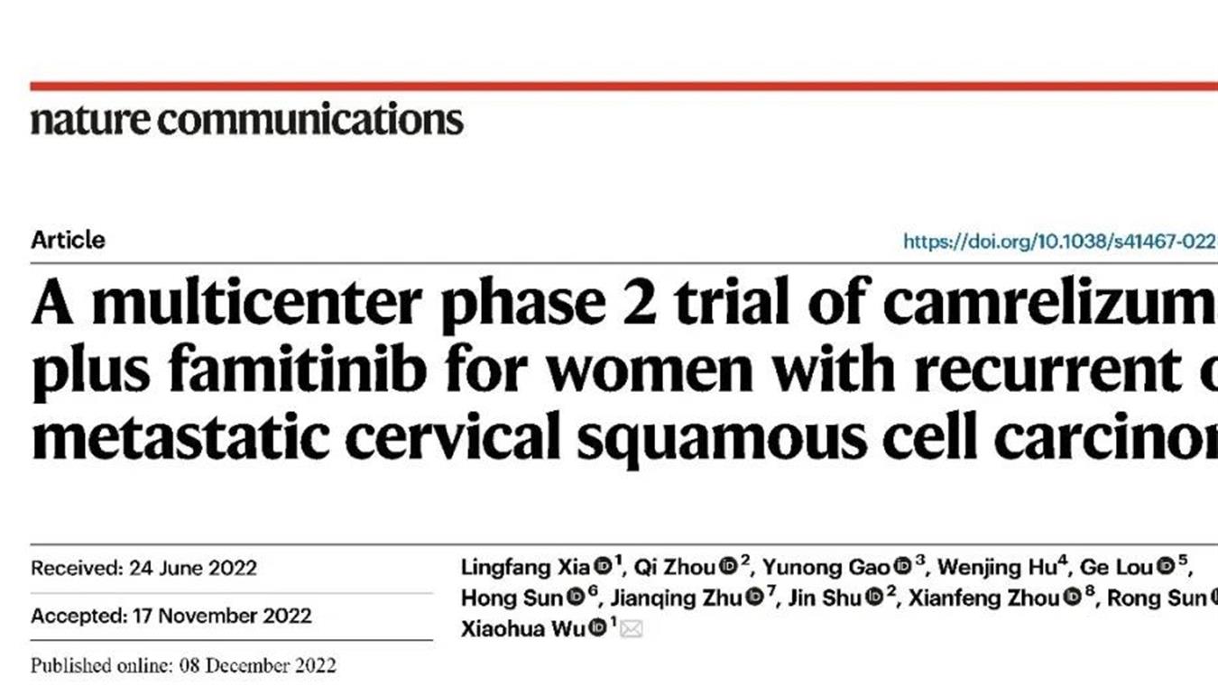 利来创新药卡瑞利珠单抗联合法米替尼用于复发或转移性宫颈癌研究结果荣登JCO